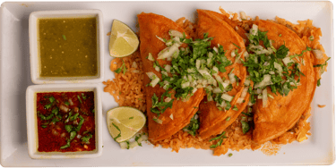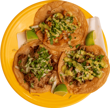 Choice of three tacos: Al Pastor, Carne Asada, or Carnitas. Served with arroz and frijoles
