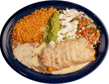 Your choice of meat wrap in a flour tortilla, deep fried and covered in queso