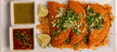 Choice of three tacos: Al Pastor, Carne Asada, or Carnitas. Served with arroz and frijoles